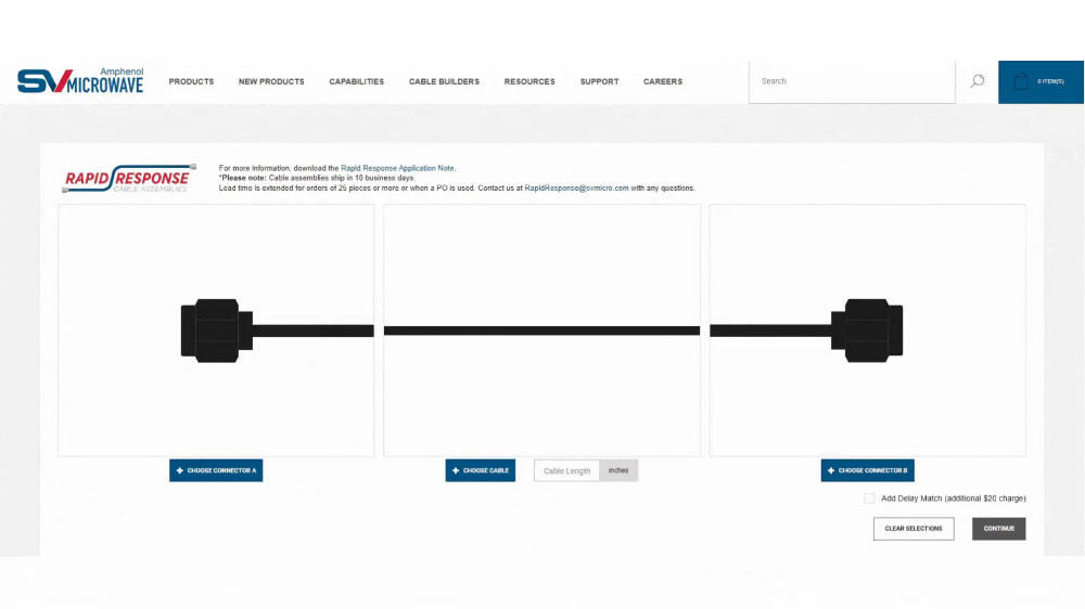 If you wish to create your own custom coaxial cable assembly, then check out Rapid Response, the company’s single-port cable builder. You can select from over 1,000 connector/cable combinations to create your own custom configuration. With 24/7 online ordering and instant access to datasheets, pricing, and technical specifications, this solution is not only quick and convenient but is a user-friendly RF cable builder application.