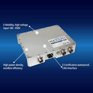 The new RECOM RMOD4000 series of compact, plug-and-play DC-DCs is a cost-effective solution to the provision of isolated 14V, 28V, or 56VDC network rails from a high input voltage between 180VDC and 950VDC from traction batteries. Up to 4kW