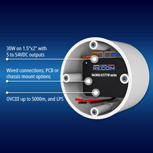 The RECOM RACM30-K series of cost-effective AC/DC converters is now offered with 36V, 48V, and 54VDC outputs for a wider variety of applications. This is in addition to the 5V, 12V