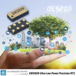 EM Microelectronic has released its EM3028 Extreme low power RTC module, establishing a new industry benchmark for accuracy and power consumption. The device shows its green IoT applications, with 50% extended battery life in comparison to