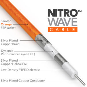 Samtec's Nitrowave high-performance microwave cables provide stability during flexure in lab test environments, ATE systems, and low-loss rugged environments such as aerospace, def