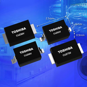 Toshiba Electronics Europe GmbH expands its surge protection Zener diodes lineup with the addition of four new products to its CUZ series. The CUZ56V, CUZ62V, CUZ68V, and CUZ75V, with Zener voltages (VZ) of 56V, 62V, 68V, and 75V, respectiv